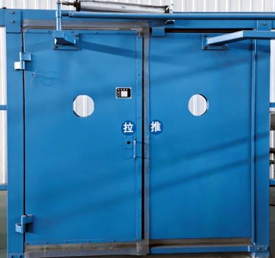煤矿自动无压风门的门体调试过程中,剪去有碍门体但无碍密封性的橡胶皮,保证门扇开关自如;调试时,遇到门扇关闭不理想时,可通过调整连接两个门扇之间平衡连杆上的螺丝而增加或减小平衡连杆的总长度,到达两扇门体紧密关闭或同时完全打开的状态,且一定要安装上开口销,以防止矿用自动无压风门的平衡连杆承受推拉力时掉下来砸伤行人或矿车。