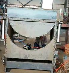 煤矿井下矿用防逆流风门一套有2组构成,一组包括2道,其中一道带条形密封皮,另一组分为上中下三部分,下面和中间挡板都是固定的,只有上面的挡板是活动的,移动方向有垂直上下移动,有的是旋转运动,目的都是当井下发生逆流情况是挡板密闭阻断流动方向。